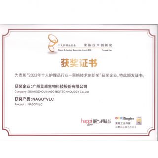 NAGO®VLC 獲得由法國ECOCERT 授予的歐盟COSMOS天然認(rèn)證